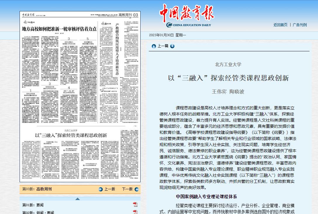 《中国教育报》刊载世界杯经管类课