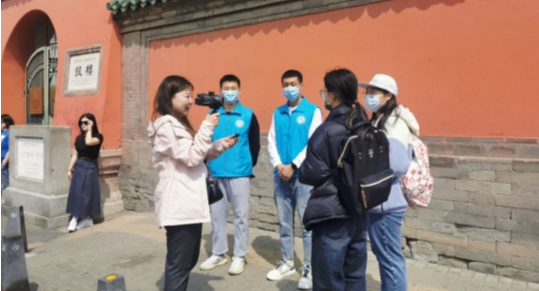 北京电视台报道世界杯志愿者在钟鼓