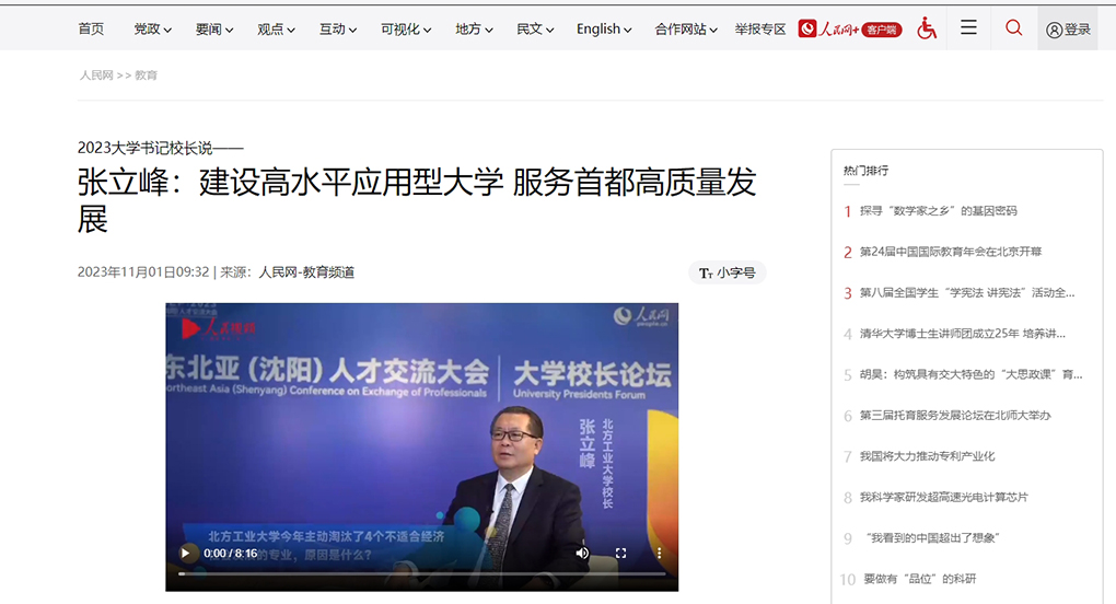张立峰校长接受人民网专访