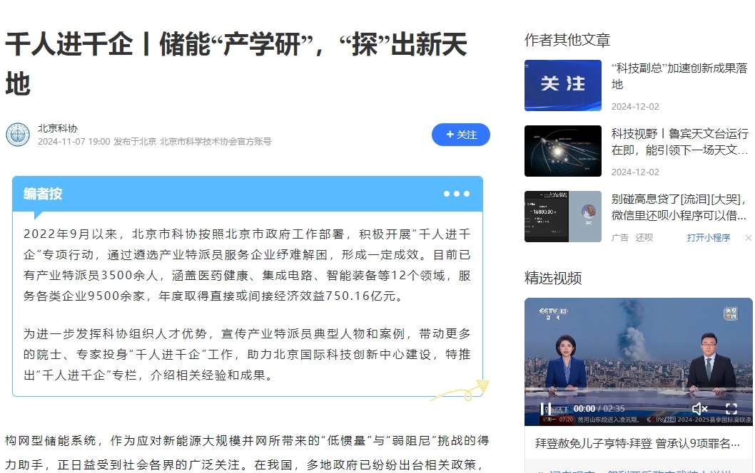 北京科协:千人进千企丨储能“产