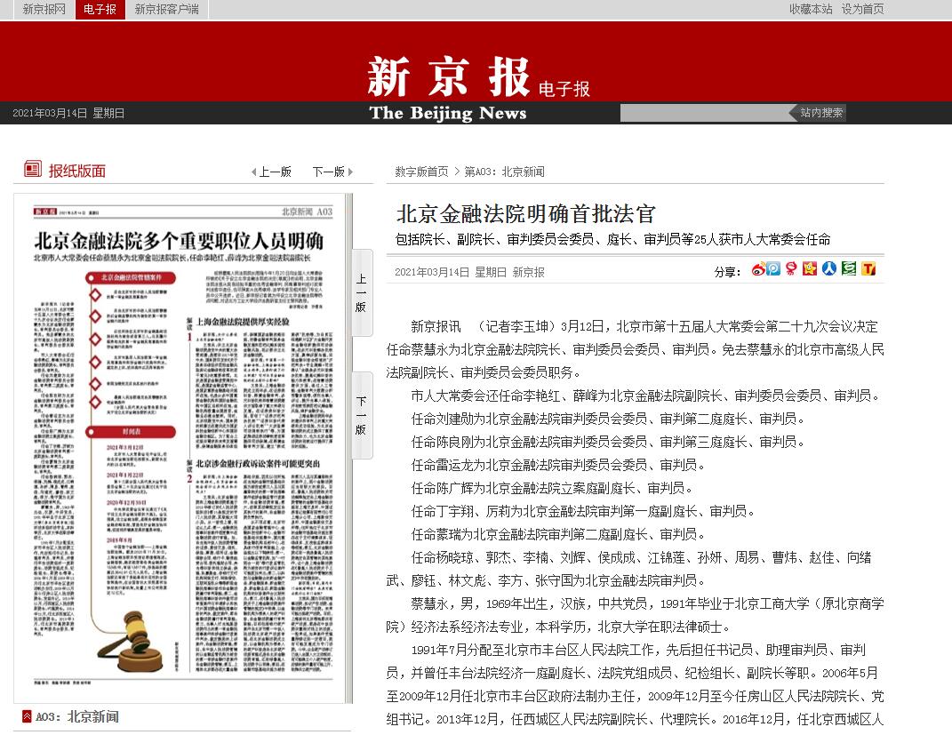 世界杯教师就北京设立金融法院接受