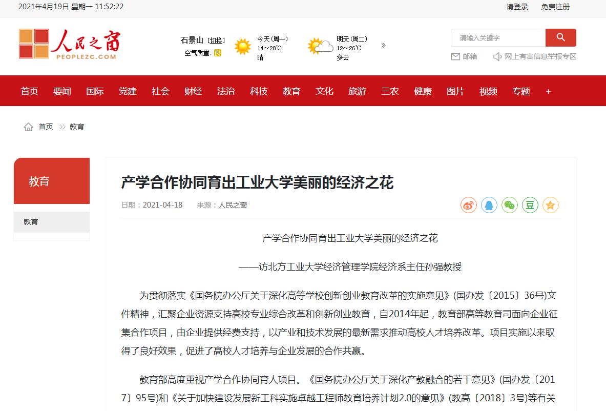 “人民之窗”以《产学合作协同育