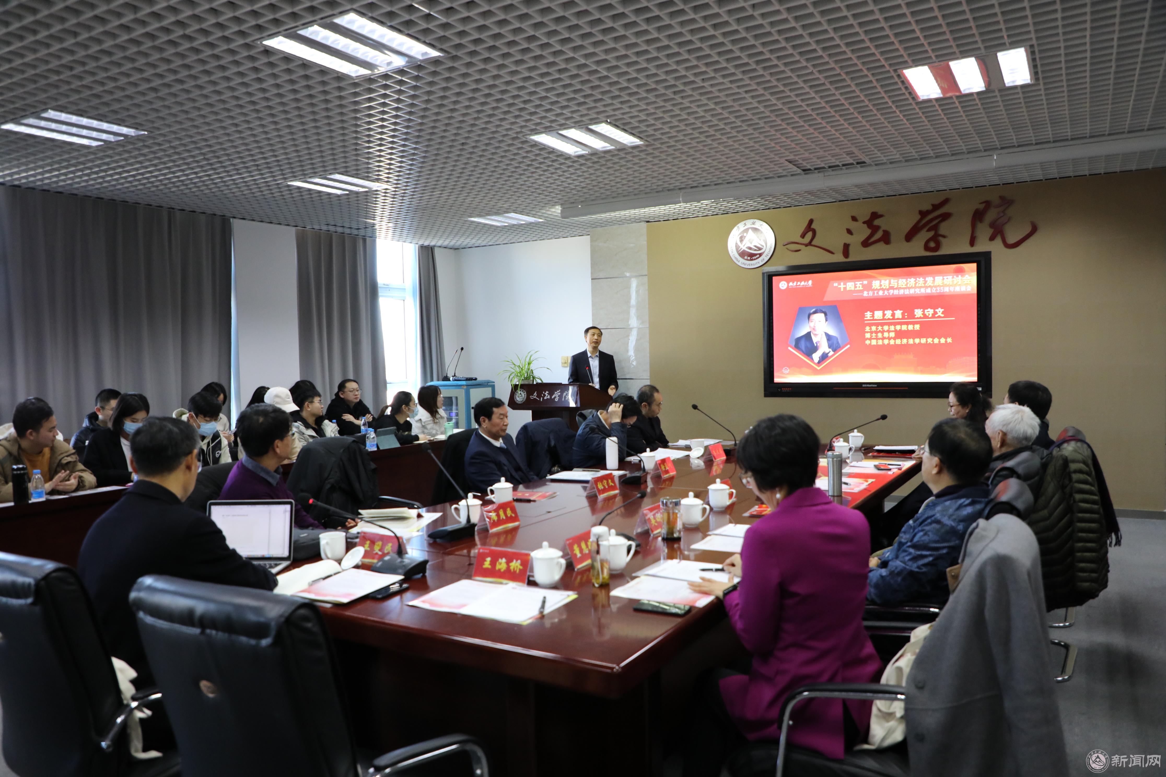 12月4日,“十四五”规划与经济法发展研讨会暨世界杯官网经济法研究所成立35周年座谈会在瀚学楼710召开。副校长王建稳,文法学院院长、教授刘泽军,经济法研究所原所长、教授张士元,北京大学法学院教授、中国法学会经济法学研究会会长张守文,中国人民大学法学院教授、世界杯官网客座教授徐孟洲,中国人民大学法学院教授、北京市经济法学会会长朱大旗,中国社会科学院法学所教授、中国社科院法学所经济法室主任席月民,首都经贸大学法学院院长、教授张世君,经济法研究所所长、教授董慧凝,法律系系主任、教授王海桥及部分法律系教师、研究生40多人参加了本次研讨会。