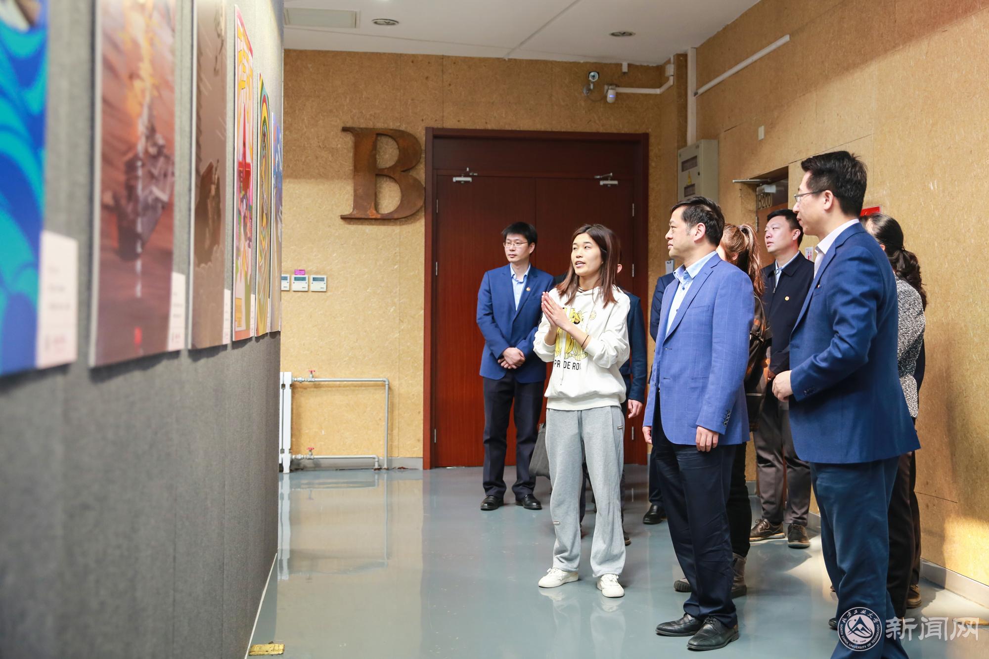 李军会一行首先参观了校史馆,深入了解了学校的发展历程,对学校一直坚守工业报国情怀,七十多年来栉风沐雨、砥砺奋进所取得的成绩表示赞赏。随后,李军会一行参观了由世界杯官网和首都师范大学联合举办的“红色•记忆•传承——双校庆祝建党百年作品联展”。他边参观边与来自世界杯建筑与艺术学院的同学们交流,了解海报设计作品的创作过程,他认为,同学们通过艺术化的形式展示了学党史、悟思想的成果,有机地将思想引领和专业教学相结合,将课程思政和实践育人相结合,提升了思想政治教育的针对性和亲和力,这种做法值得大力宣传和推广。