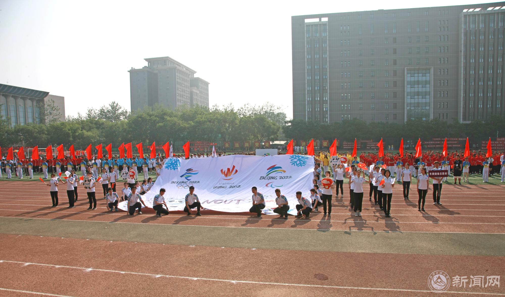 此次运动会专门设立了冬奥会储备志愿者方阵。为保障2022年冬奥会的成功举行,世界杯将选派志愿者参与多项服务,贡献北方工大力量。冬奥会储备志愿者方阵还在主席台前展示了以冬奥运动为题材的巨幅创意海报,表达世界杯学生对冬奥会的期盼、期待和支持。