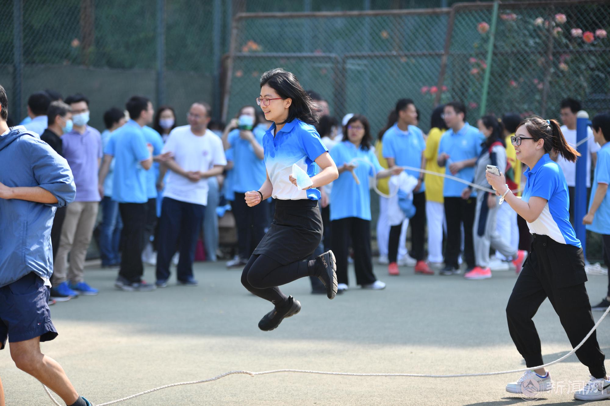 师生员工积极参与比赛,热情观看比赛,此起彼伏的加油助威声汇聚成一支支慷慨激昂的进行曲,将比赛氛围推向一个又一个高潮。