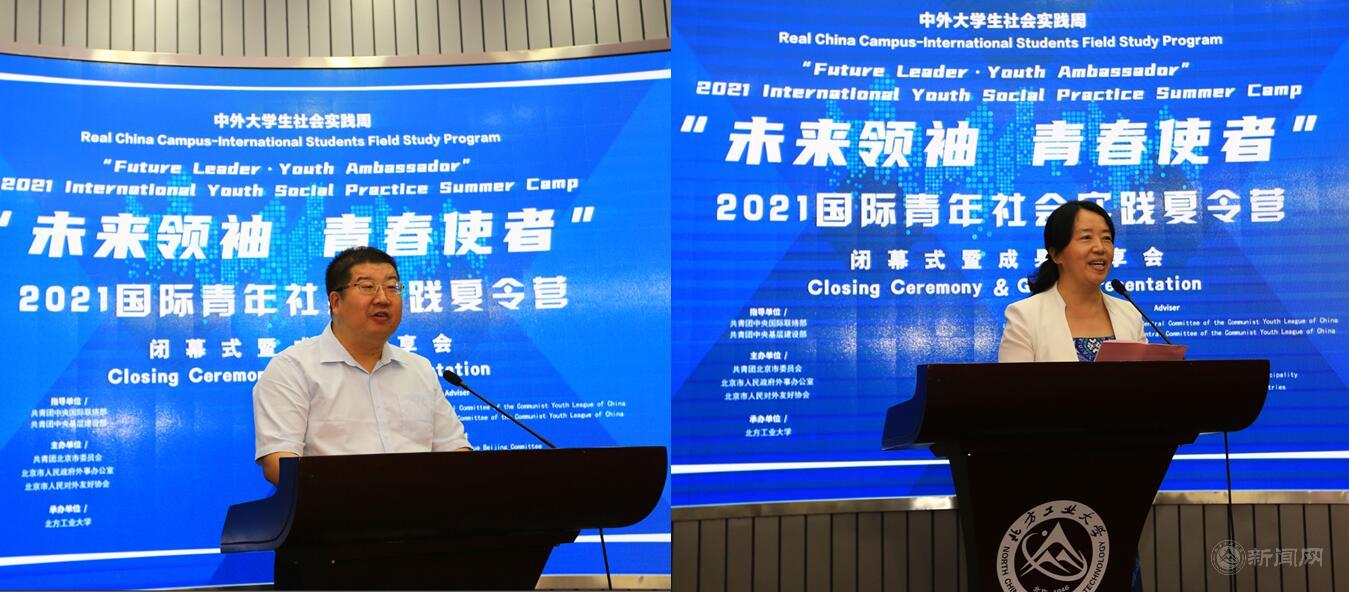 闭幕式上,董霞、张谦分别对青年营的中外营员发表寄语,希望中外青年能够通过实践加深对新时代中国的认识和了解,加深彼此的交流和友谊,传播中华优秀传统文化,讲好中国故事。李军会、缪劲翔、岳伟等领导分别为中外营员代表颁发夏令营纪念证书、为参与高校和国际青年汇颁发纪念牌。李健致闭幕词,对本次国际青年社会实践夏令营进行了总结;田红芳代表学校致欢迎词。