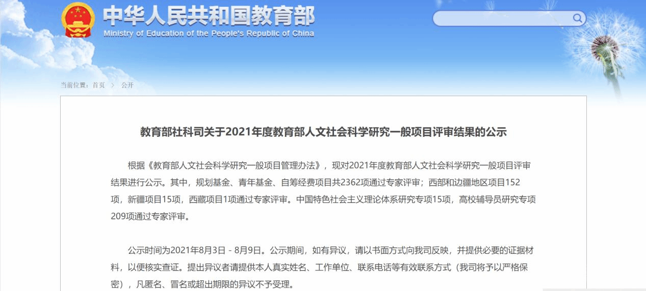 教育部人文社会科学研究一般项目是仅次于国家社科基金项目的高水平竞争性科研项目,立项数量在一定程度上反映了高校人文社科研究水平,也是教育部学科评估、市教委科研统计中的重要参照指标。