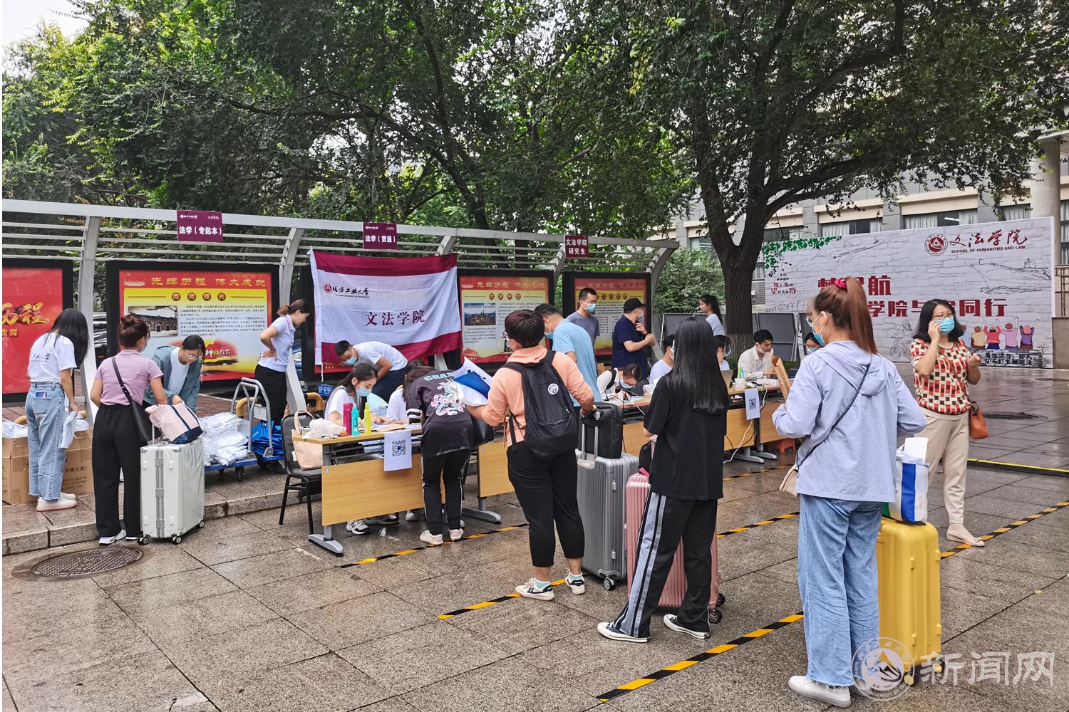 清晨,各学院和职能部门的迎新点就已经就位,老师、学生志愿者和后勤工作人员开始紧张忙碌起来,为迎接新同学步入新家做好准备。