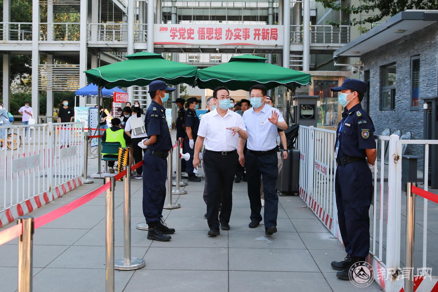 夏书记实地查看了学校北门人员入校、体温检测、核验健康码等情况,并关切地对改善北门周边环境提出了指示要求。