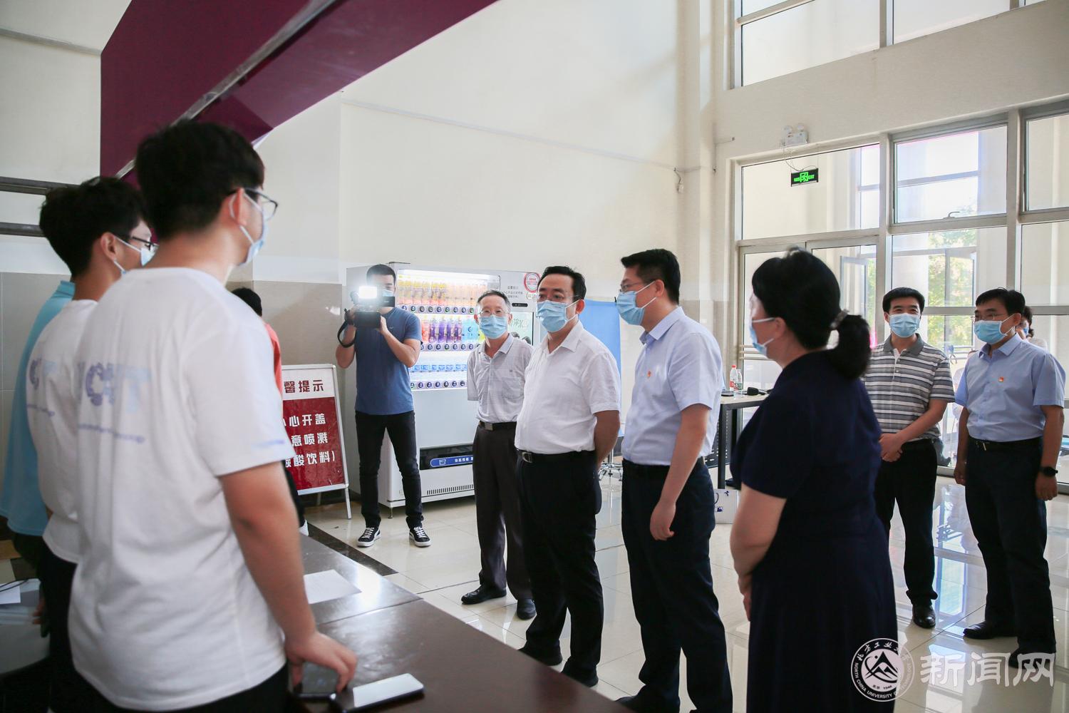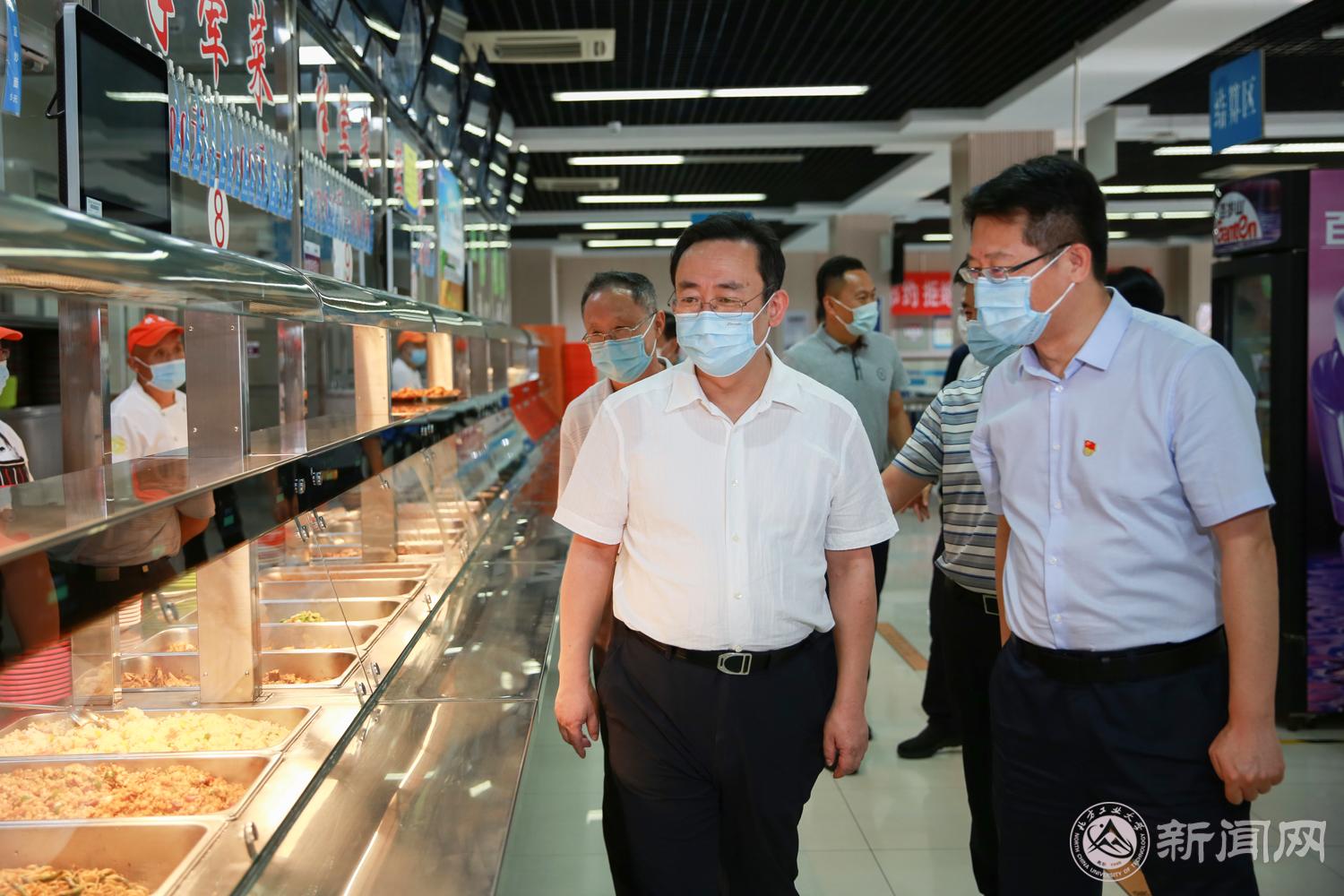 在学生食堂,夏书记仔细查看了疫情防控工作,查阅了消毒记录,检查测温设备、消毒物品的准备情况。他走到餐食窗口查看伙食情况,当听说学校曾经获得北京高校“舌尖食堂争霸赛冠军”时,他连连点头表示肯定。他特别强调,要落实好食堂等后勤服务保障岗位职工定期核酸检测工作,确保将防控措施落实到位。