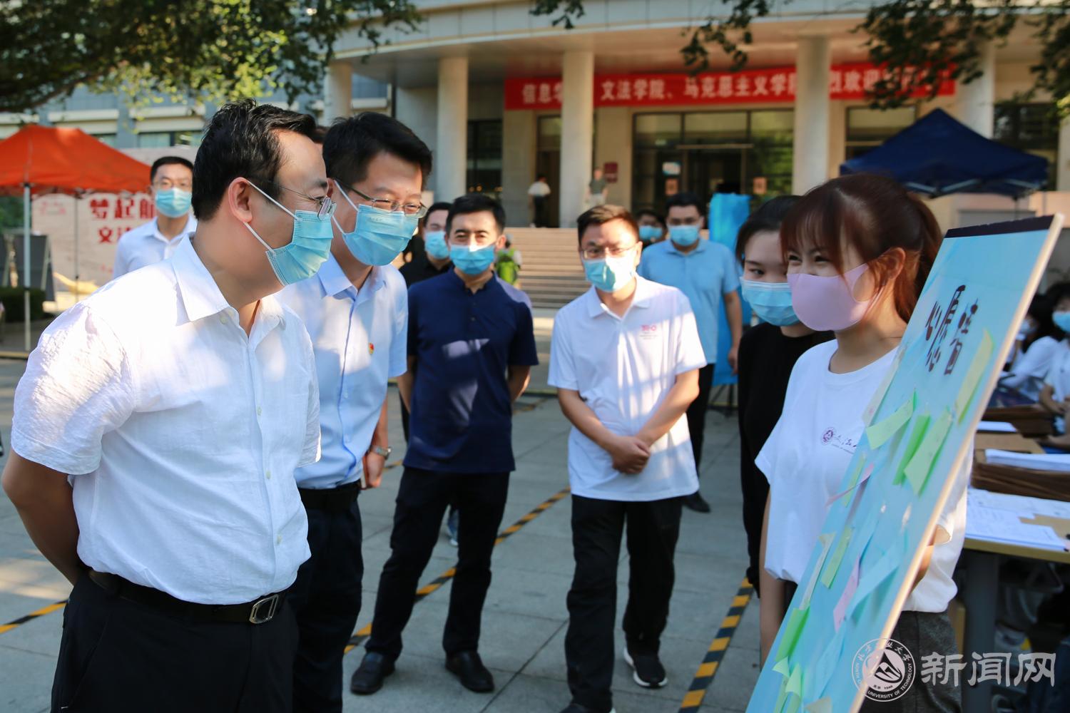 夏书记来到文法学院新生报到处,了解了学院专业设置情况和新生报到情况,在“新生心愿墙”前驻足留步,仔细阅读新生们张贴的心愿留言。