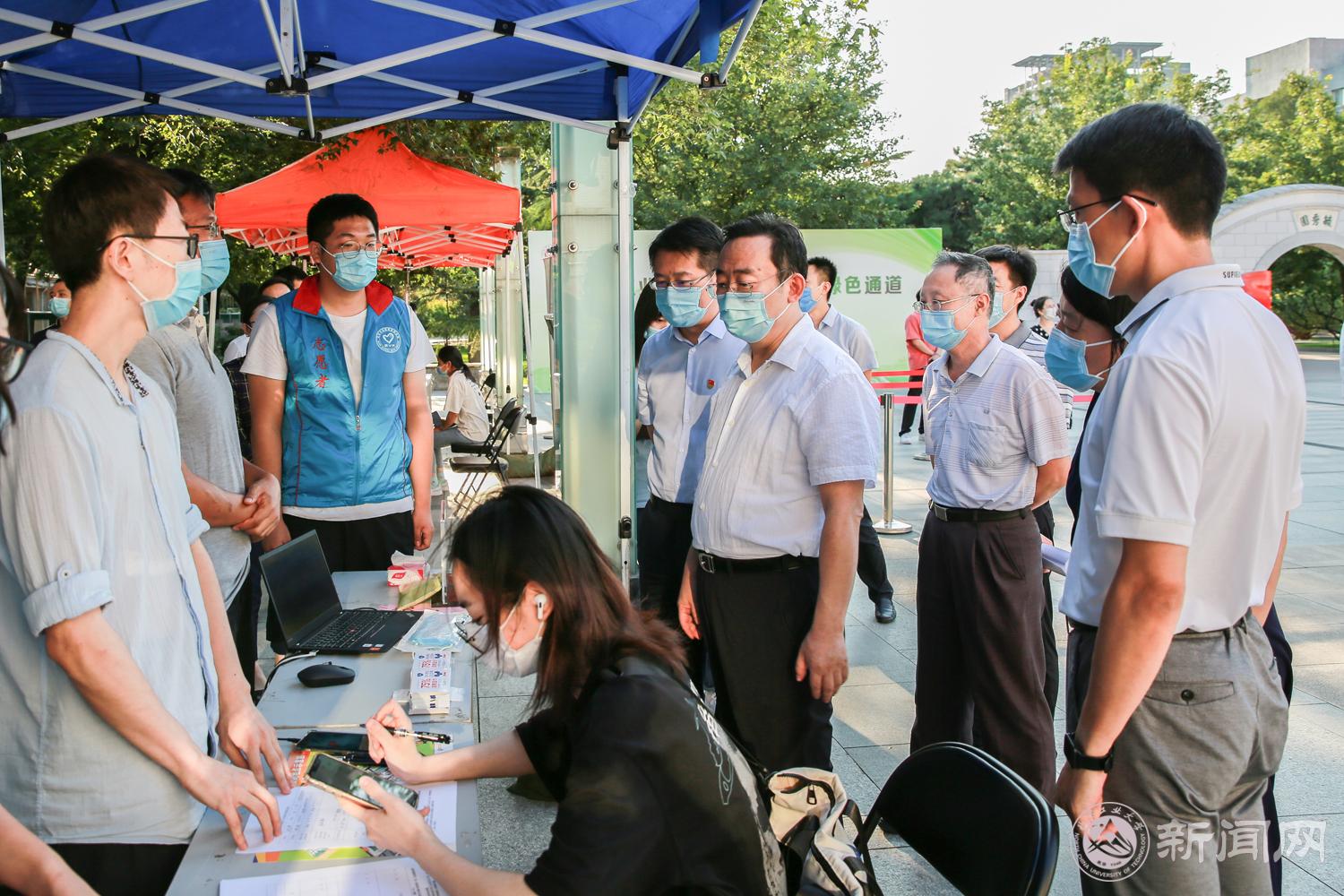 夏书记来到招办咨询处,询问了本科和研究生新生报到进度,强调疫情防控是当前的大事,要严格落实疫情防控措施,做好各项疫情防控工作,确保师生健康和校园安全。