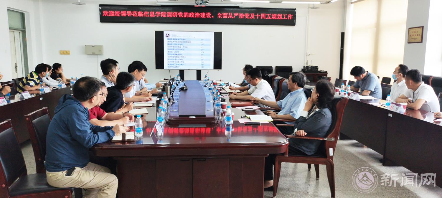 缪劲翔对信息学院在党的政治建设、全面从严治党及“十四五”规划等方面的工作给予了肯定。他指出,信息学院领导班子和谐团结,有着较强的凝聚力和担当精神。学院工作基础好、有亮点,党建工作有传统,实践育人特色彰显。他强调,“十四五”是学校建设高水平应用型大学的关键时期。信息学院领导班子要进一步提高政治站位,紧密围绕服务首都“四个中心”功能建设需求,对标对表学校“十四五”规划目标任务,继承发扬学校“兴工报国”优良传统,立雄心树壮志,追求卓越,进一步总结党建和思想政治工作等方面的好经验好做法,率先在人才培养、师资引育、团队建设、标志性成果、激励机制等方面研究形成一系列具有改革性、创新性、更有力、接地气的办法举措,以跨越式发展引领学院“十四五”各方面工作,建设学校高水平应用型大学示范学院。