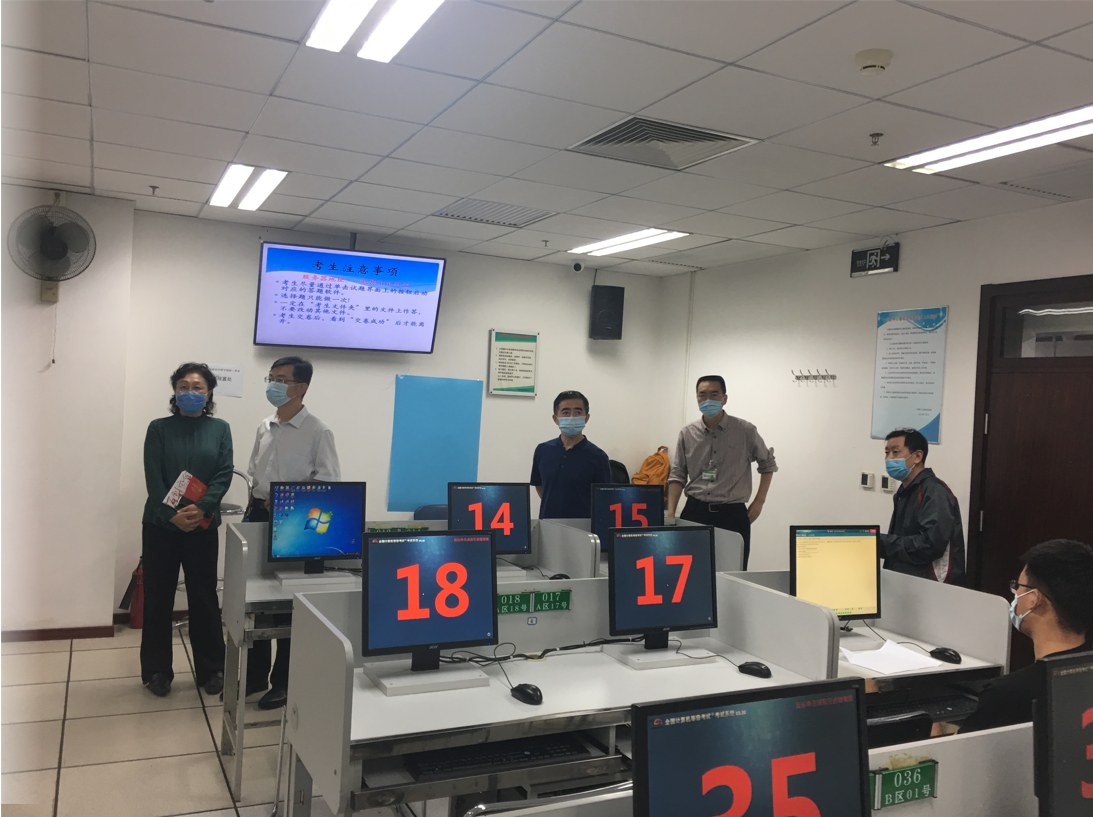 本次考试共计2400人次参加,人数创世界杯组织该项考试新高。考生来源主要包括世界杯学生、周边社会考生和北京军区的军人,对提高世界杯学生计算机应用能力和服务北京、服务军队具有重要意义。栗苹副校长详细询问了考生来源、防疫工作、考务管理等方面的组织工作,并对每个考场以及备用考场进行了巡视。教务处和信息学院主要负责人陪同作现场指导。
