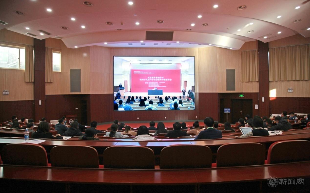 “北京教育系统学习党的十九届六中全会精神专题报告会暨思政课教师‘同备一堂课’活动”由中央宣讲团成员、原中央党史研究室主任欧阳淞主讲。学校党委职能部门负责人、各学院副书记、辅导员、思政课教师和马理论专业研究生等100余人在文化会堂进行集体学习。