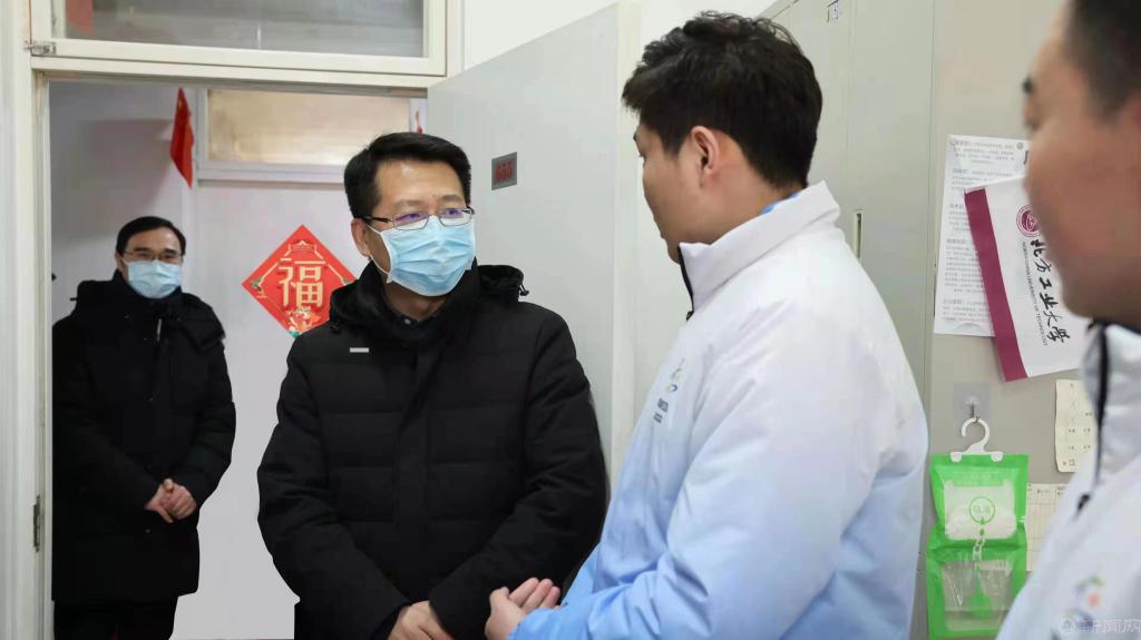 学校班子成员先后走访了网络安全与信息化中心机房、校南门值班室、瀚学楼管理室、锅炉供暖房、安稳中控室、后勤服务大厅、毓秀食堂、学生宿舍楼和校医院,每到一处,缪劲翔和张立峰都会详细询问寒假期间安保、餐饮、供暖、疫情防控等工作情况,向大家表达新春的美好祝愿,叮嘱大家一定要继续绷紧疫情防控这根弦,保障学校寒假和春节期间的安全稳定和各项工作正常运转,并对坚守岗位的工作人员致以诚挚的谢意。