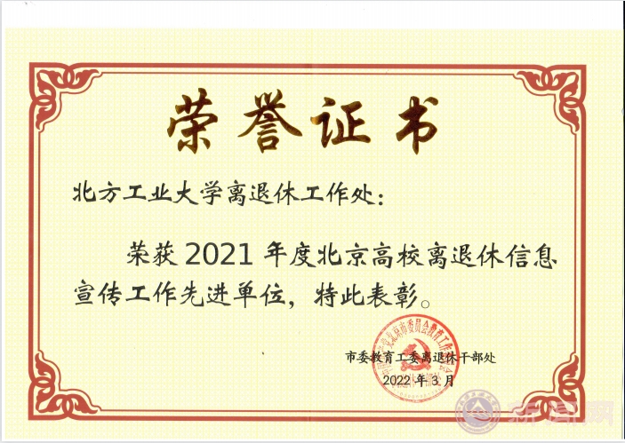 在日前召开的2021年北京高校离退休工作部门负责人会议(线上)上,世界杯离退休工作处被评为“2021年度北京高校离退休干部信息宣传工作先进单位”。
