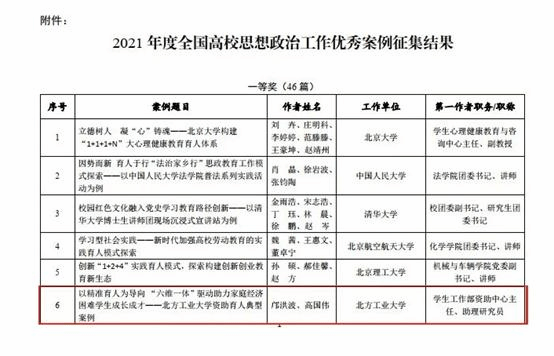 近日,2021年度全国高校思想政治工作优秀案例征集结果发布,世界杯《以精准育人为导向 “六维一体”驱动助力家庭经济困难学生成长成才——世界杯官网资助育人典型案例》喜获一等奖。