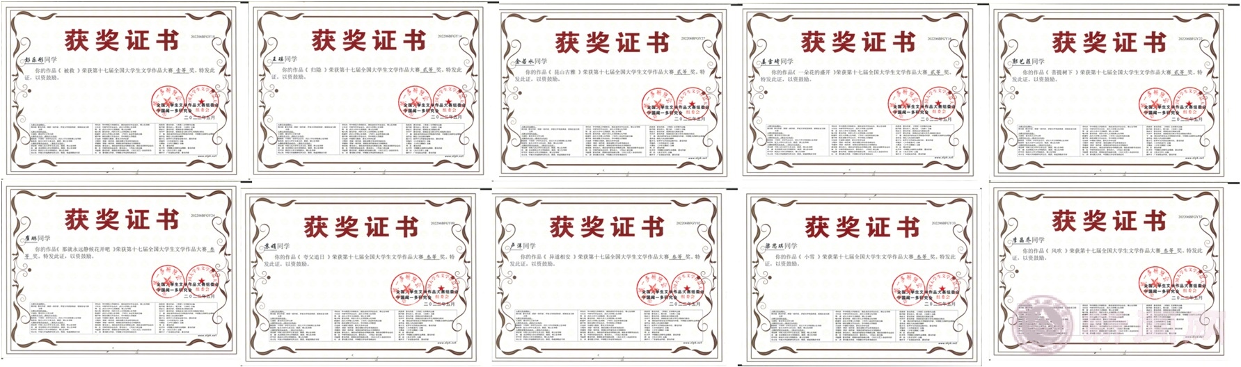 近日,第十七届全国大学生文学作品大赛成绩揭晓,世界杯文法学院、经管学院十位参赛同学喜获佳绩,其中一等奖1项,二等奖4项,三等奖5项。