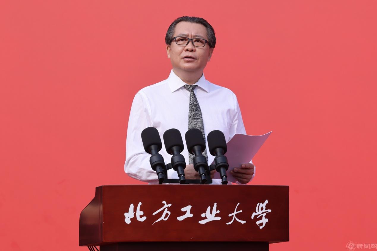 第三句话:有才有德、做个好人、做一个有抱负的人。张立峰深入解读了学校“敦品励学、才德并懋”校训的内涵,希望同学们能成长为有才有德的国家栋梁。他表示,一代人有一代人的际遇,一代人有一代人的奋斗,身处伟大的时代,同学们要树立远大抱负,将北方工大“兴工报国”的爱国主义红色基因深深镌刻在骨子里,赋青春以信仰,赋信仰以担当,赋担当以使命,用青春的智慧和汗水将个人理想融入伟大梦想。希望同学们让青春之光闪耀逐梦征程,在实现中华民族伟大复兴的赛道上奋勇争先,成长为有理想、敢担当、能吃苦、肯奋斗的新时代好青年。