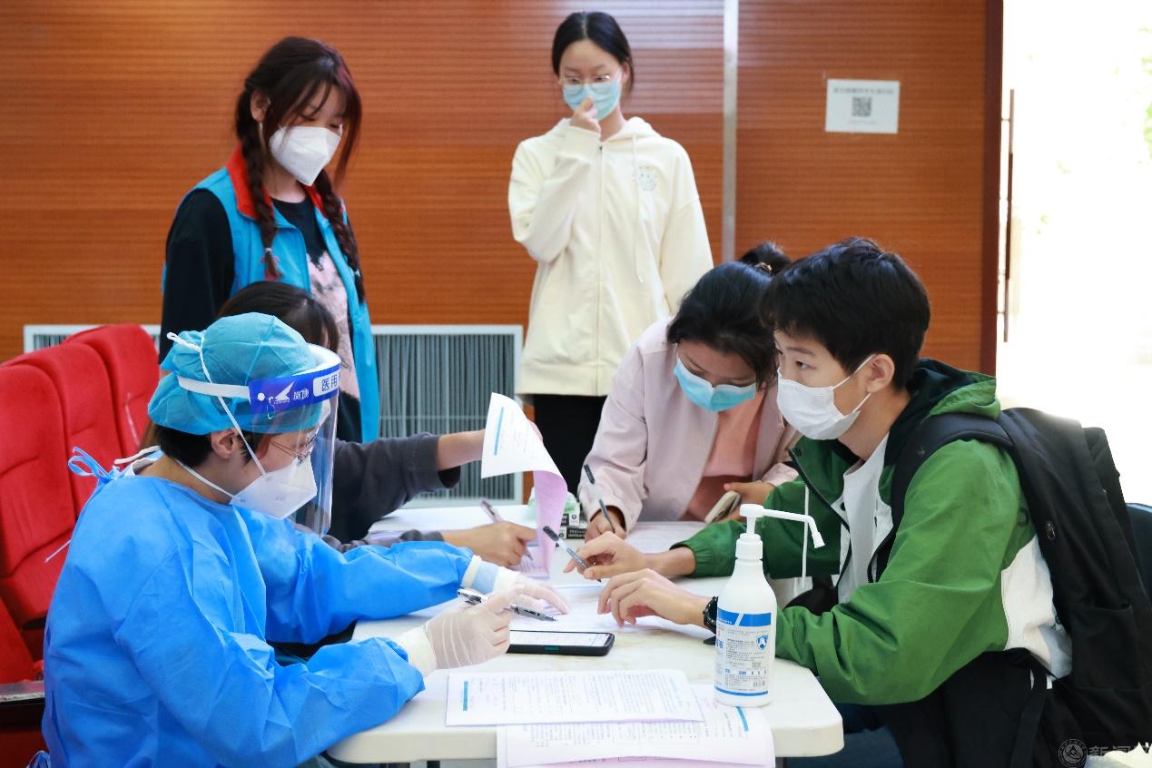在前期大规模集中接种工作经验的基础上,学校进一步优化流程、科学部署,加强与属地的协调沟通和工作联动,不断提高疫苗接种的科学化、规范化水平。学校制定了详细的工作方案,多部门联动,建立多支服务保障队伍,合理设置接种路线,科学安排接种流程。在接种现场,参与接种的同学有序排队,顺次完成咨询、登记、注射、留观等流程;医护人员和学生志愿者提供细致耐心咨询服务,整个接种过程安全、科学、有序。