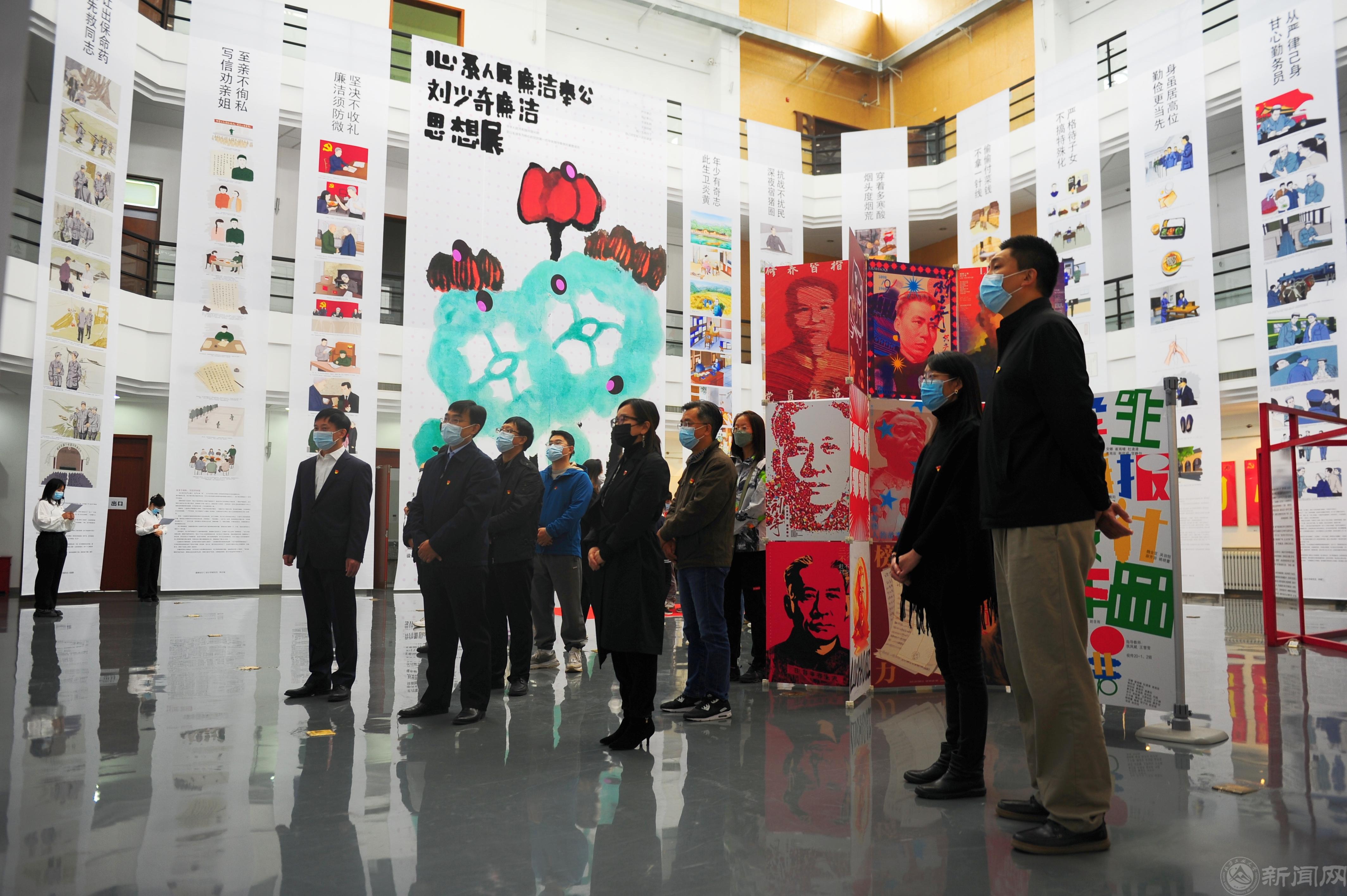 本次展览以习近平总书记在纪念刘少奇同志诞辰120周年座谈会上的重要讲话为指导,由艺术设计系教工党支部负责策划并编辑创作文案,精选刘少奇同志廉洁故事19 篇,设计学研究生党支部党员手绘插画近200 幅,视传20-1、20-2班学生创作设计海报30幅,集中展现了刘少奇同志“心系人民、廉洁奉公”廉洁思想和感人事迹。