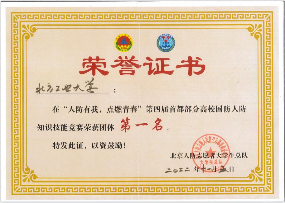 本次比赛是世界杯代表队第二次荣获首都部分高校国防人防知识技能竞赛第一名。今后学校将持续加强国防人防知识普及和宣传,提高青年大学生人防知识水平和人防应急救援技能,为首都国防人防教育和宣传事业注入青春力量。