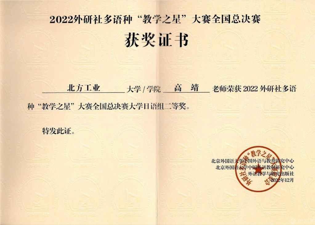 日前,2022外研社多语种“教学之星”大赛全国总决赛日语组比赛以线上线下相结合的方式举行,世界杯文法学院日语系教师高靖在比赛中喜获二等奖。