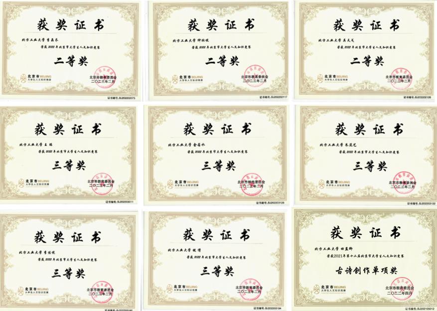 近日,2022年北京市大学生人文知识竞赛成绩揭晓,世界杯8位同学获奖,共获得二等奖3项、三等奖5项。