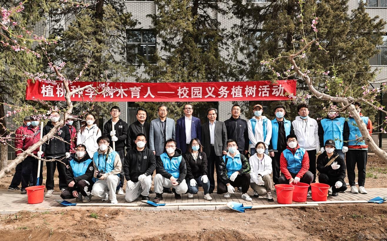 一年之计,莫如树谷;十年之计,莫如树木。4月11日,“植桃种李,树木育人”校园义务植树活动在博智楼南侧开展。校长张立峰、党委副书记史贞军、党委常委副校长王建稳、校长助理陈群与20名同学一起种下了一排桃树。