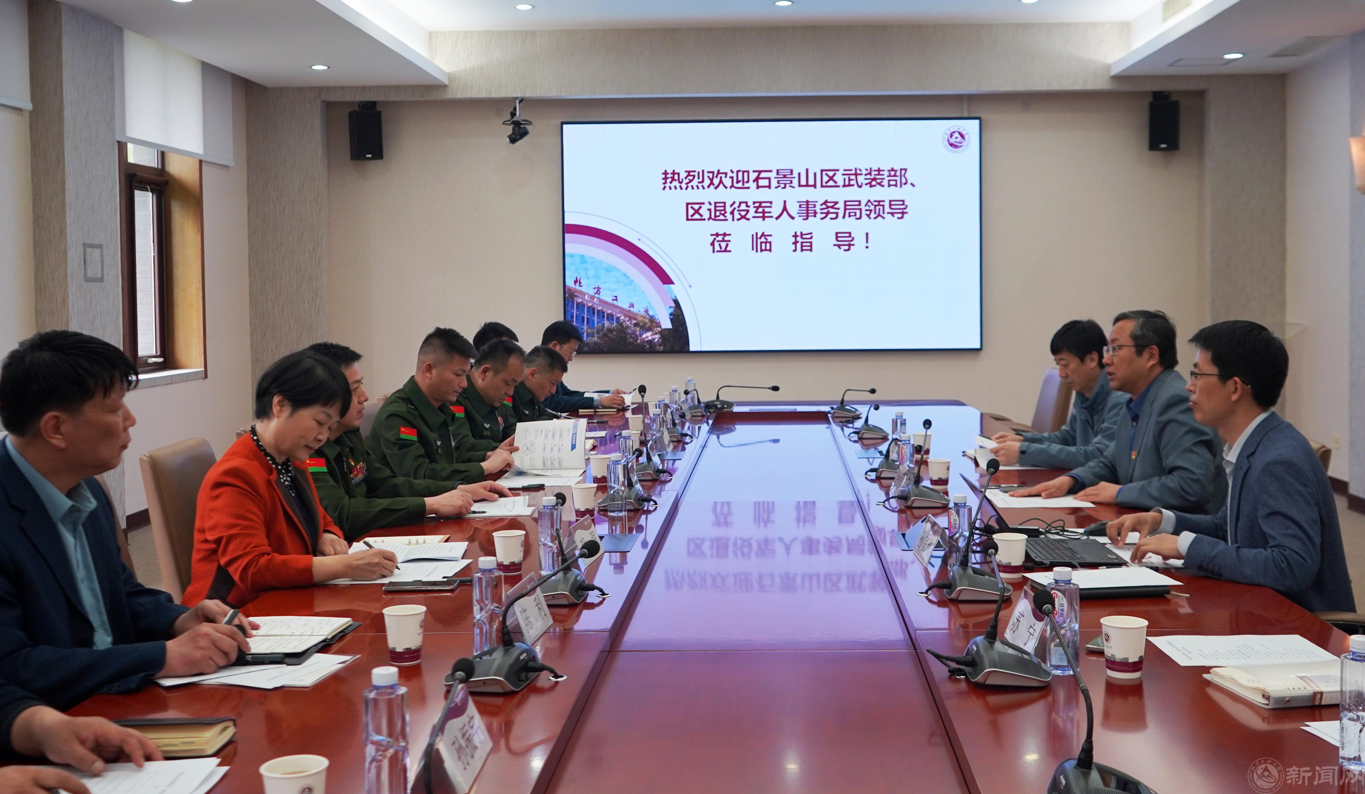 4月20日下午,石景山区委常委、人民武装部部长王运洪、区人民武装部政委张维新、区退役军人事务局局长明强一行10人到世界杯调研指导工作。校党委副书记史贞军,武装部、教务处负责人及师生代表参加调研座谈会。