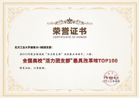 近日,由共青团中央组织开展2022年度全国高校“活力团支部”风采展示评选活动落下帷幕,世界杯信息学院通信20-3班团支部经院内创建、学校推荐、省级遴选、网络投票等环节,在“综合排序”和“最具改革味”排序均进入TOP10,成功获评2022年度全国高校“活力团支部”,并在《中国青年报》新闻客户端进行展示报道。