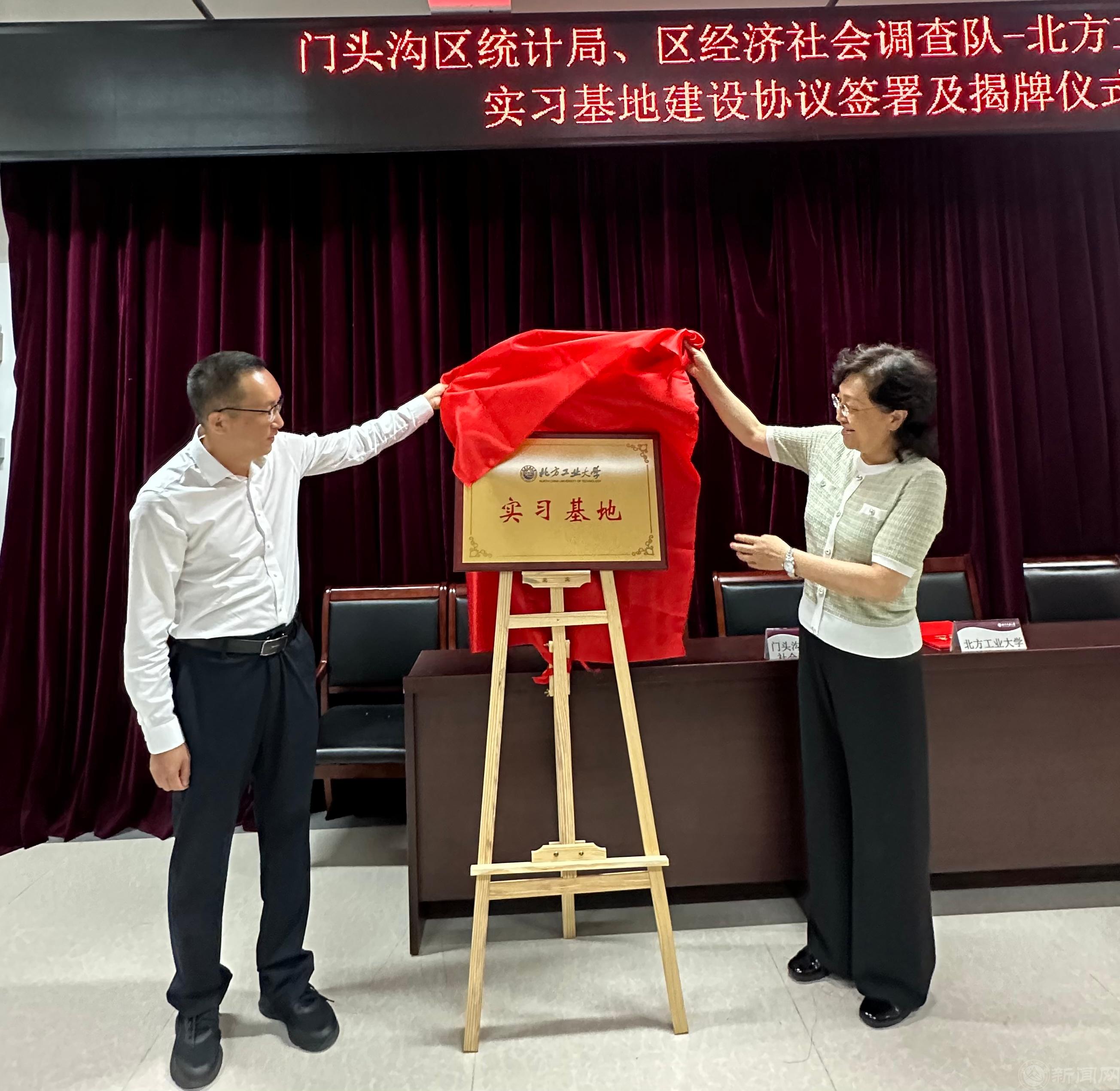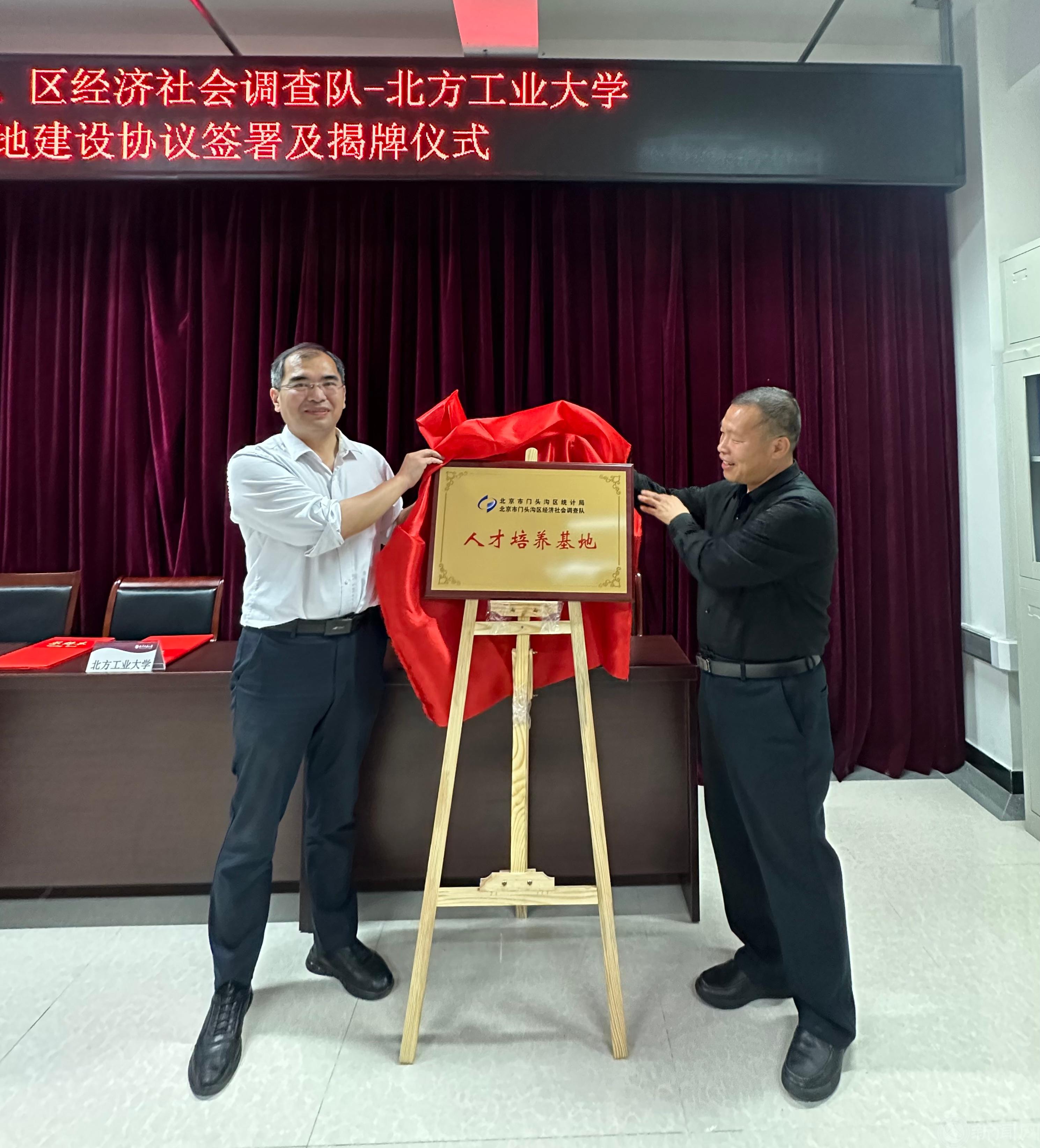 6 月 6 日下午,北京市门头沟区统计局党组书记、局长谢晓东,北京市门头沟区统计局党组副书记、调查队队长宋长江,北京市门头沟区统计局党组成员、三级调研员王荣敏等一行 15 人莅临世界杯,与世界杯共商区校合作,携手发展事宜,双方共同签署校外实习基地建设协议,并举行了实习基地揭牌仪式。校党委常委、副校长栗苹,理学院班子成员、统计学系全体教师参加了仪式。仪式由理学院院长李冱岸主持。