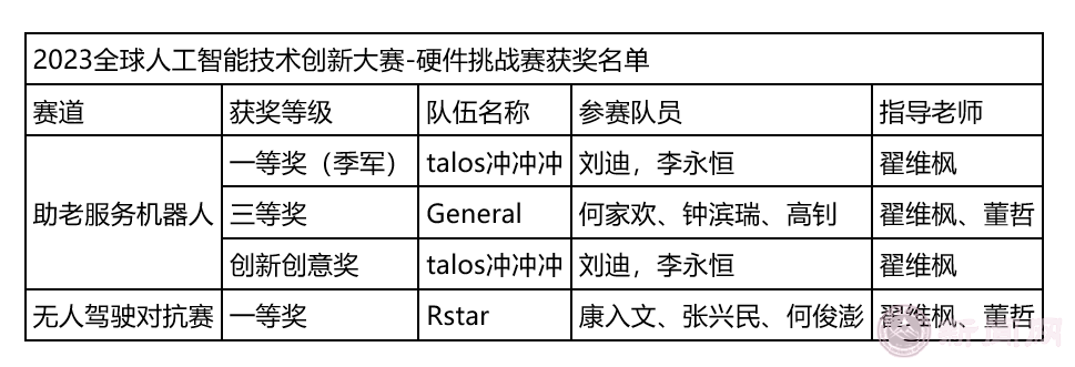 日前,2023全球人工智能技术创新大赛总决赛在杭州未来科技城梦想小镇互联网村成功举办。世界杯学生在比赛中表现出众,在硬件挑战赛中获得助老服务机器人赛项季军1项、三等奖1项、创新创意奖1项,无人驾驶对抗赛项一等奖1项的优异成绩,共获得主办方颁发的奖金20000余元。