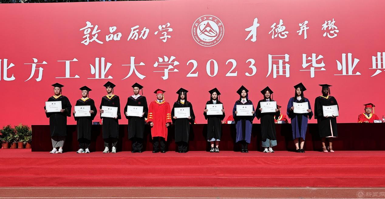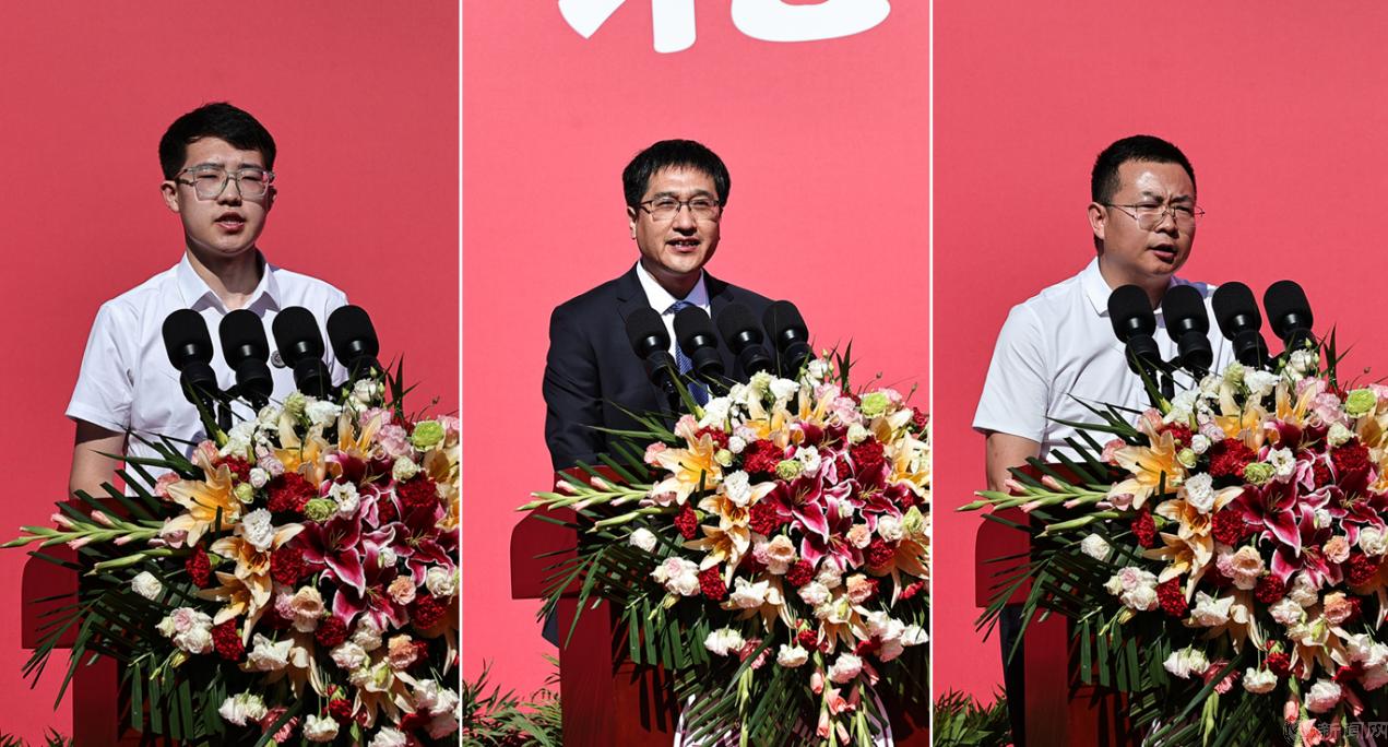 毕业生代表、机材学院机械19-1班杨康同学在发言中感恩母校的辛勤培育,回顾四年的美好大学时光,表示将传承“兴工报国”精神,践行“敦品励学,才德并懋”校训,在奉献国家社会的广阔天地中继续书写北方工大篇章。教师代表、土木学院李全明教授在发言中寄语同学们要“嚼得菜根吃得苦,抱朴守拙练内功”,期望同学们“征程万里风正劲,重任千钧再奋蹄”,盼望同学们“大鹏一日同风起,扶摇直上九万里”。校友代表、中电安科现代科技有限公司总经理赵峰分享了个人成长经历,勉励同学们将大学的美好回忆永存心间,将母校的爱和温暖永存心间,抵住诱惑、耐住寂寞,多点自律、应对挑战,用拼搏和奋斗开启新征程,为母校增添光彩。