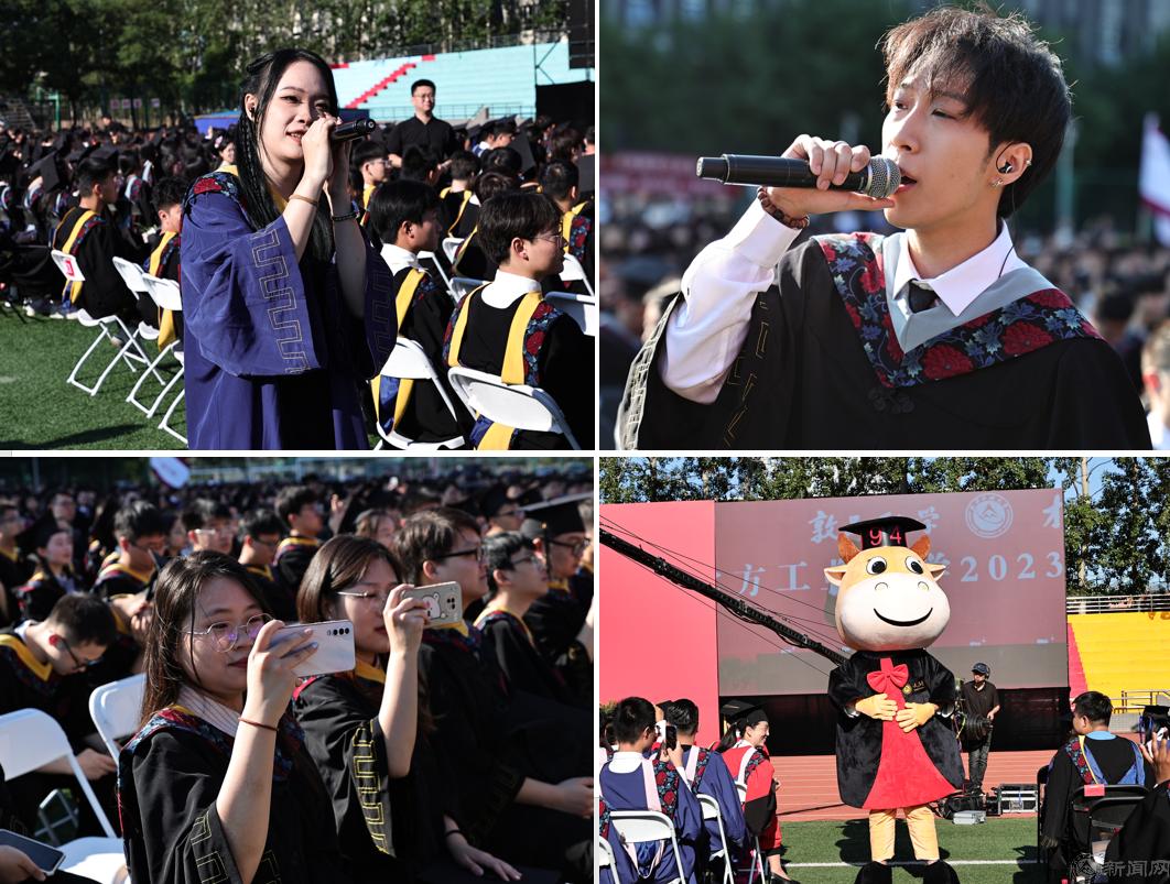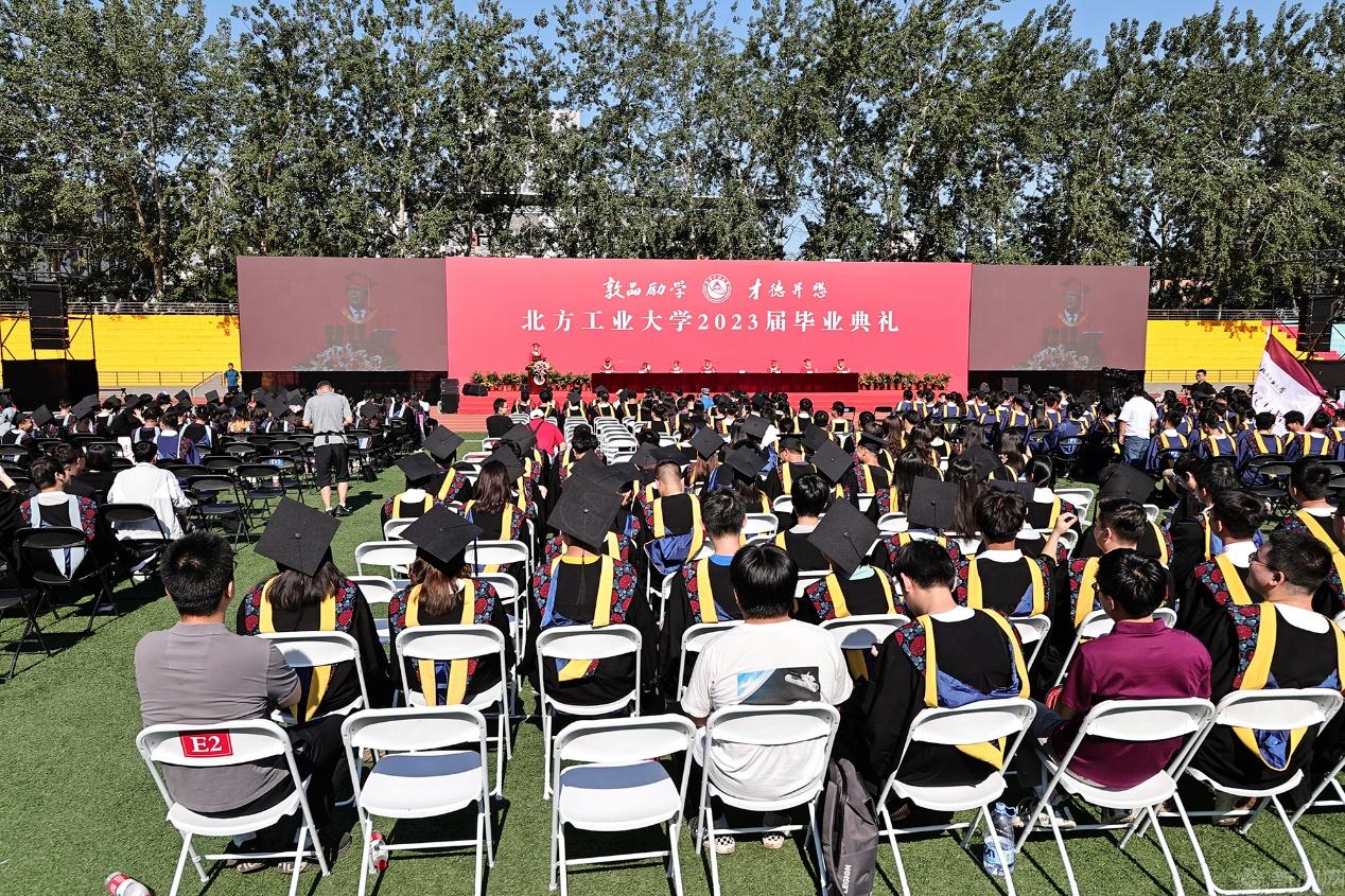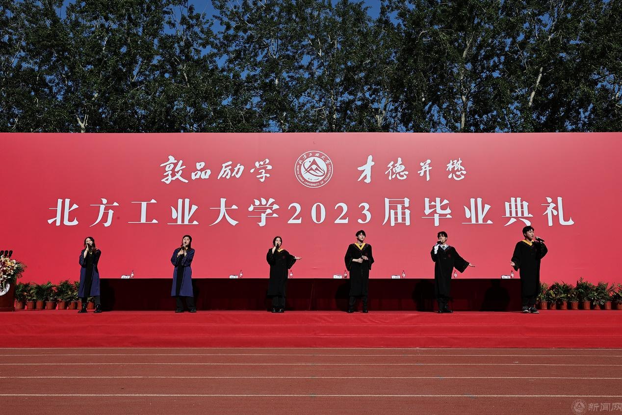 清晨的阳光渐次洒满绿荫场,同学们一早就来到典礼现场。“毓秀芳华,终不悔青春梦想;志达四方,心常系家国天下”“青春逢盛世,扬帆正当时”......操场上的一幅幅毕业寄语,动情地表达着工大学子们即将别离母校、展翅高翔的激动心情。几位毕业生歌手从人群中走出,激情献唱《起风了》《那些年》《海阔天空》《凤凰花开的路口》《祝你一路顺风》《我要飞得更高》,唱出了感恩工大、青春报国的赤子之心。毕业视频“毓秀青春纪念册”生动回顾了同学们校园生活的点点滴滴,勾起了同学们在北方工大美好的青春记忆。