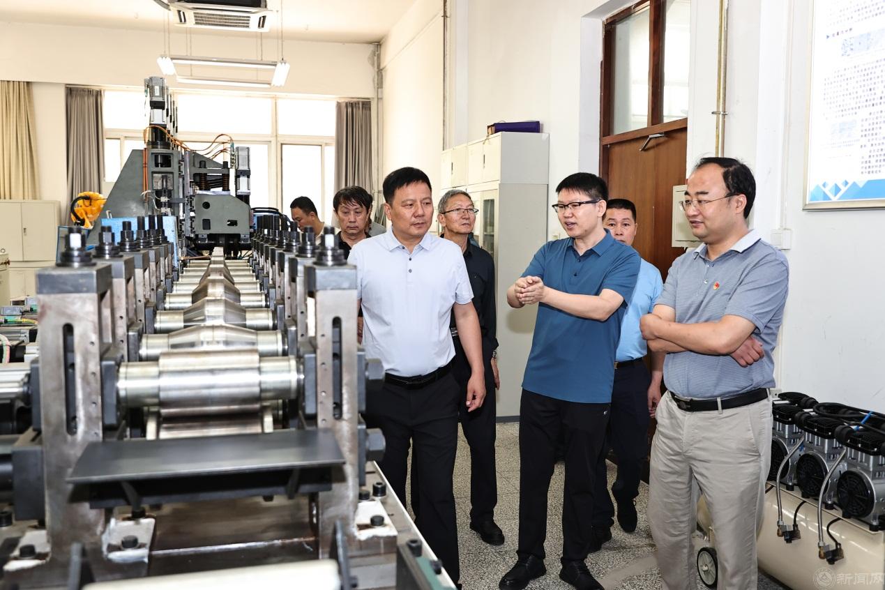 座谈会开始前,王纵驰一行参观了校史馆,考察了北京市变截面辊弯成形工程技术中心、国家级实验教学示范中心实习实验楼、城市风险防控与智慧应急实验室、北京城市道路智能交通实验室、大规模流数据集成与分析技术北京市重点实验室。