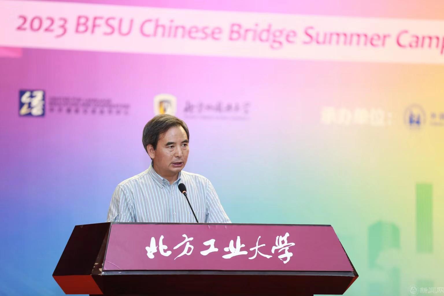 周朝虹代表承办方做夏令营活动总结。她表示,本期夏令营全程14天,内容多姿多彩,精彩纷呈,包括汉语课、文化体验、多国文化汇、中国家庭访问、游览参观等。营员们近距离接触古老而现代的北京,感受中华文化魅力,在跨文化交流中感知世界文明多样性。