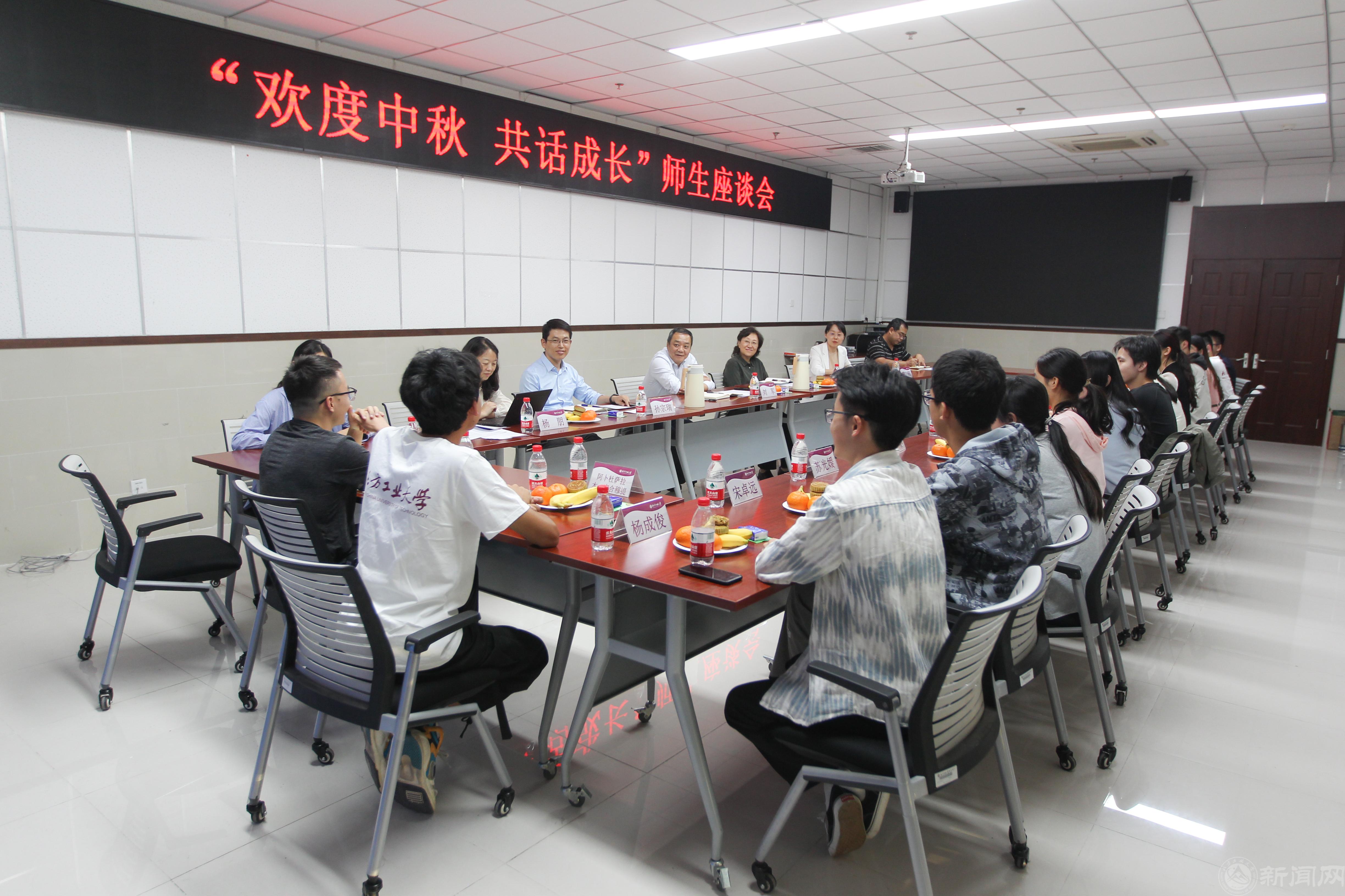 9月28日下午,学校在学生服务楼318会议室召开“欢度中秋,共话成长”师生座谈会。校党委书记刘军,校党委常委、副校长栗苹出席座谈会,与14名学生代表欢聚一堂、共庆佳节。学校办公室、学生工作部、校团委负责人参加了座谈会。