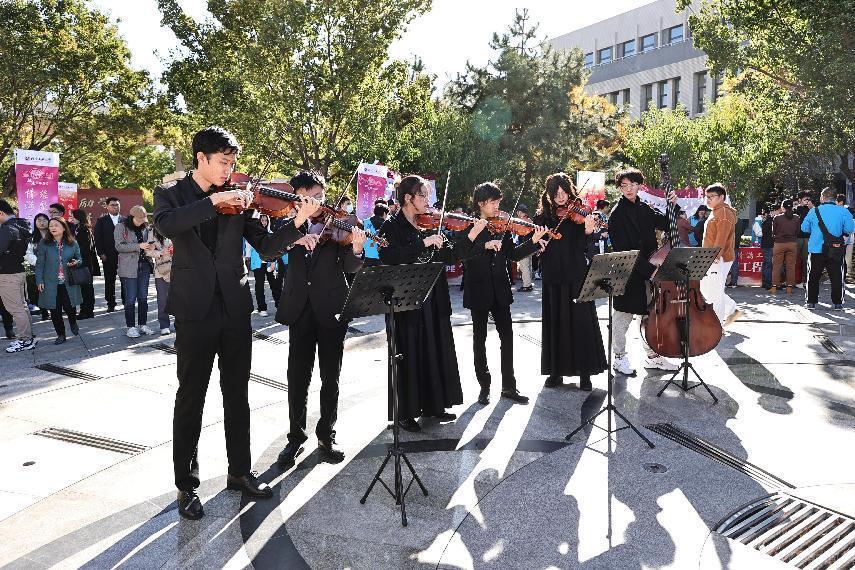 伴随着悠扬的琴声,校友们报到的钟秀广场一早就成为欢乐的海洋。一声“好久不见”,饱含几多离愁别绪;一个紧紧的握手、一个深情的拥抱,传递出无限欣喜和思念。