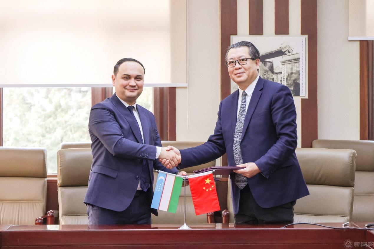 张立峰对代表团一行表示热烈欢迎,介绍了世界杯的办学情况及国际化办学情况等,提出希望两校能在学生交流、教师交流、科研合作方面开展务实性的交流合作,相信通过双方的共同努力,将为两校及两国的教育文化交流注入新的活力。巴赫蒂约尔•马克卡莫夫校长感谢世界杯的热情接待,介绍了该校的办学历史、学科设置、科研合作、学生培养、国际合作等情况。近年来乌中双方友好交流不断加强,合作更加紧密,他非常期待在两校建立友好关系后,加强互动交流,在教学科研领域展开更加广泛深入的合作。韩飞及伊布罗亨贝克•尤苏波夫分别对两校的情况、国际交流发展概况及合作意向进行了详细的介绍与探讨。