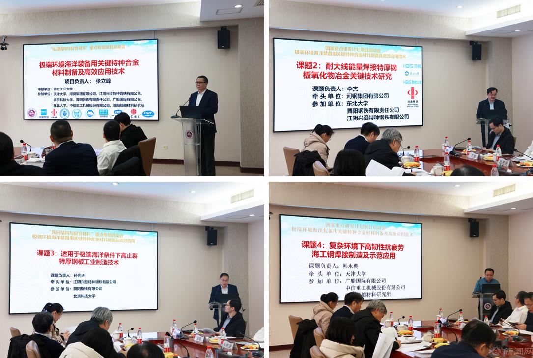 项目负责人张立峰详细介绍了项目的总体目标、任务安排与实施方案等情况。随后,河钢集团材料院副院长李杰、兴澄特钢特板所所长孙宪进和天津大学教授韩永典分别围绕课题研究的实施方案进行了详细汇报。