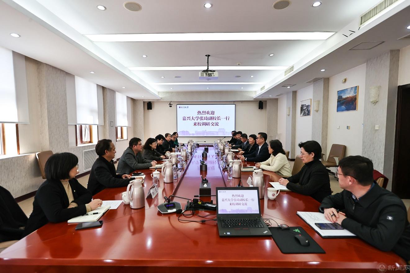 3月11日,嘉兴大学副校长张琦一行8人来校调研交流。党委副书记、校长张立峰,党委副书记田红芳,党委常委、副校长栗苹在敦品楼342与客人进行座谈交流。座谈由栗苹主持。