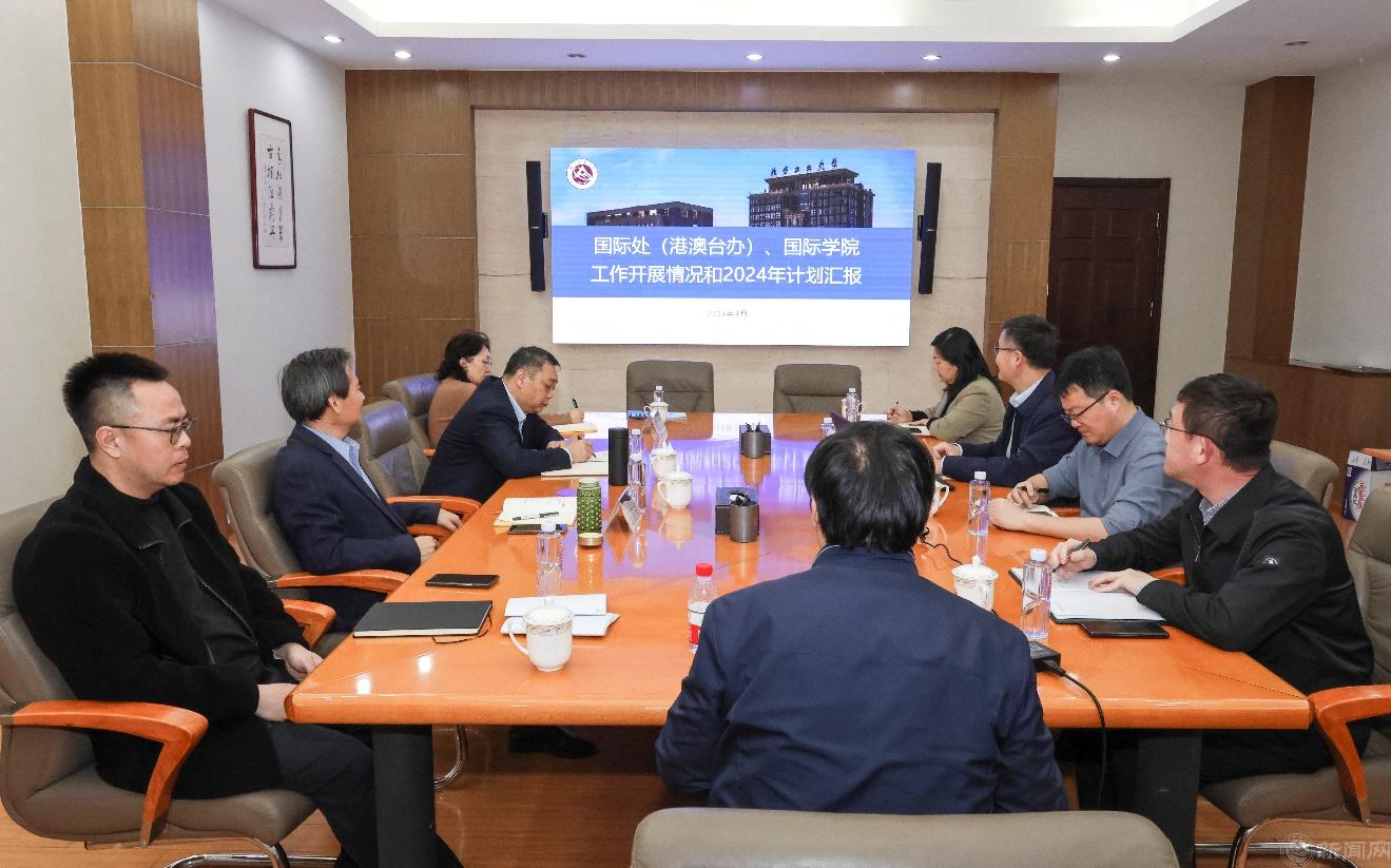 国际合作与交流处处长、国际学院院长韩飞汇报了主要工作开展情况和2024年重点工作计划。