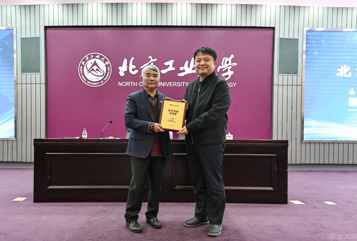 报告结束后,陈群副校长为谭建荣院士颁发了北方科技大讲堂纪念铭牌。