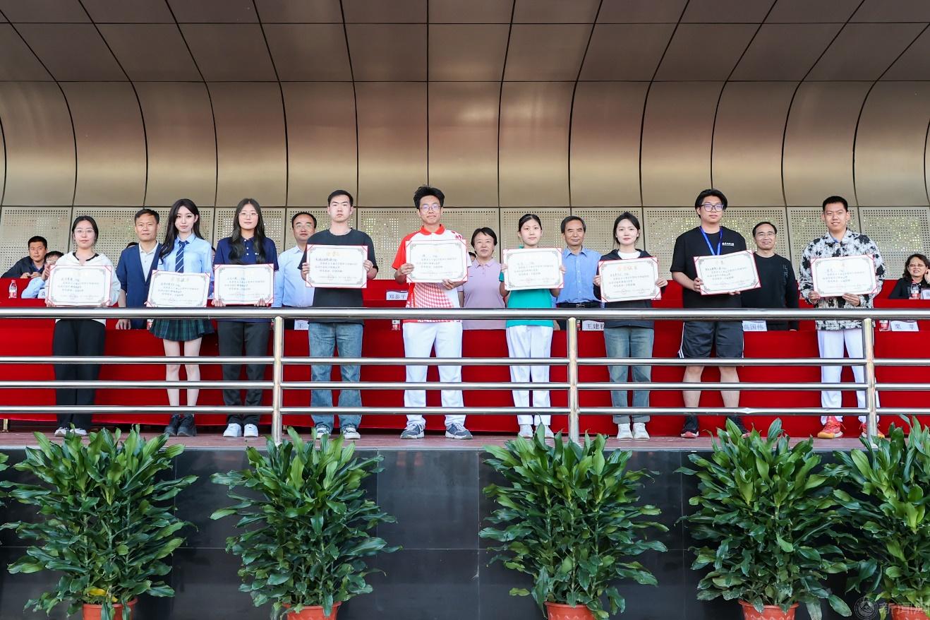 校领导为获奖单位和运动员代表颁奖。