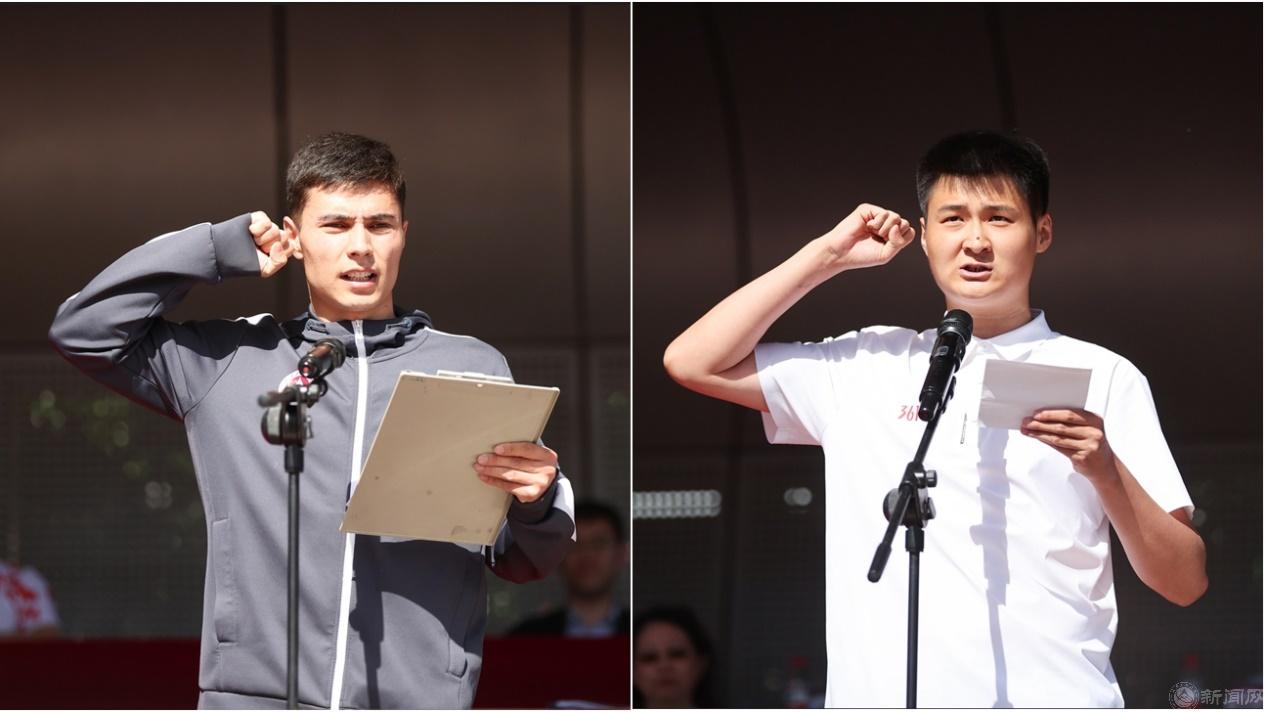 运动员代表阿巴斯.买尼提亚孜同学和裁判员代表韩继祥老师分别代表运动员和裁判员庄严宣誓。