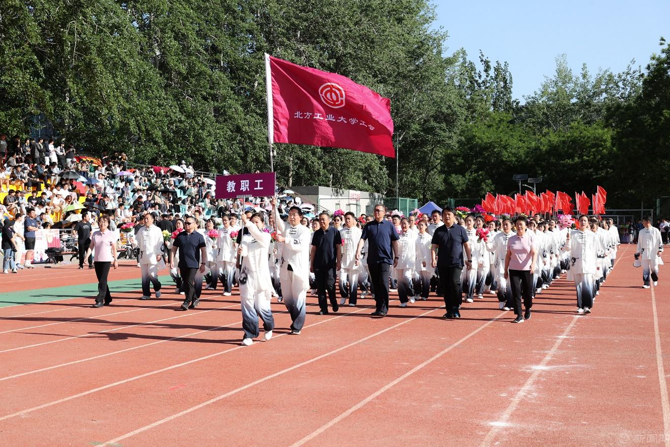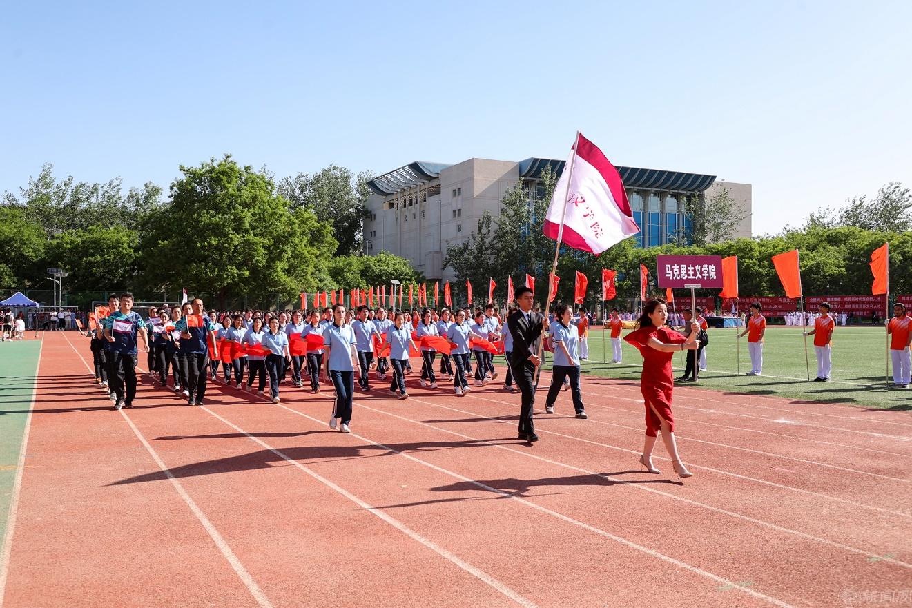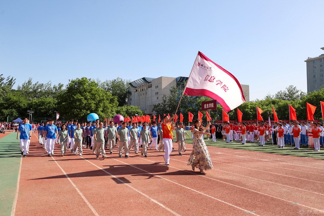校领导刘军、张立峰、田红芳、王建稳、栗苹、卢晓斌、陈群等与教职工代表走在方队最前列,用实际行动弘扬体育精神,投身高水平应用型大学样板建设火热实践。
