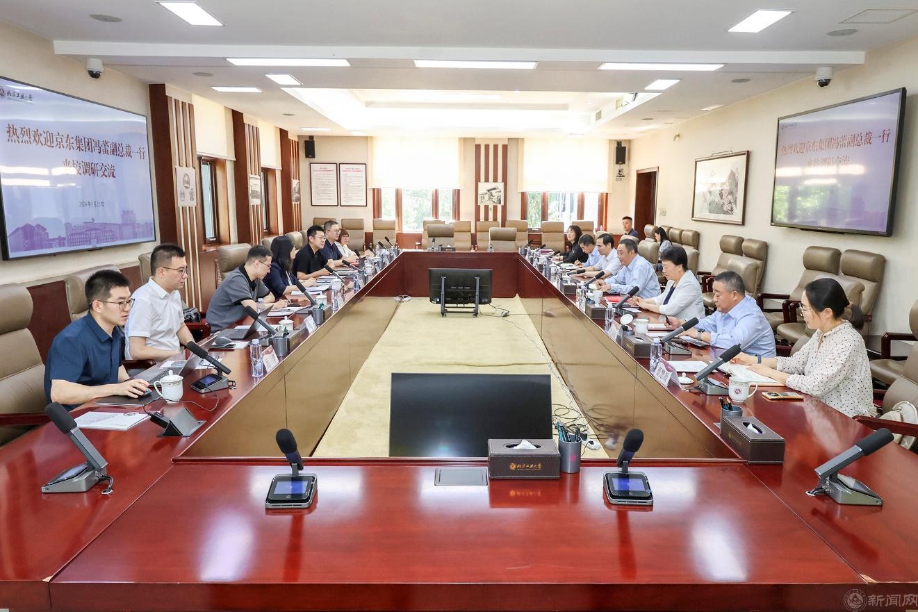 刘军对冯蕾一行来访学校表示欢迎,从办学定位、人才培养、学科建设、服务社会等方面介绍了学校基本情况。他高度评价京东集团的价值取向、精神文化,表示京东集团是一家高科技头部企业,具有深厚的教育情怀和强烈的社会责任感,是一家与国家经济社会发展紧密联系的支柱企业。刘军指出,双方具有天时、地利、人和的合作基础,要秉承有前景、能落地、可持续的原则,围绕人才培养、学科建设、学生就业实习、党建思政等深入开展合作共建,制定项目清单,建立工作机制,深入推进校企合作,实现互利共赢,为首都高质量发展作出应有贡献。